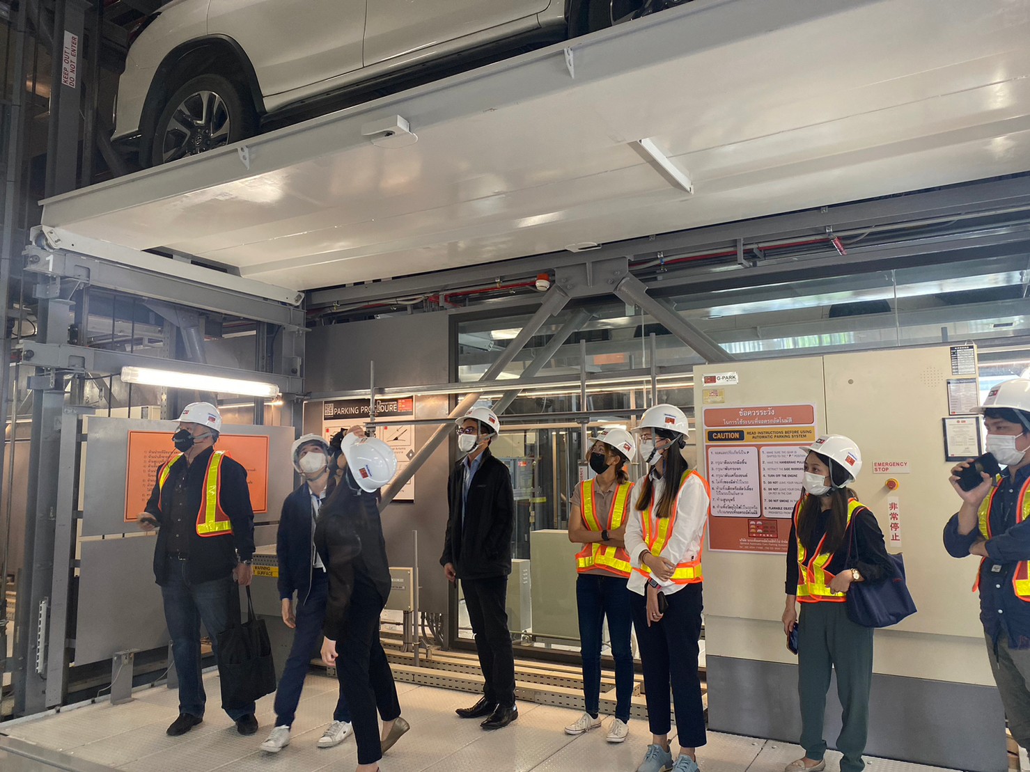 จากนั้นได้พาเยี่ยมชมการใช้งานจริงของระบบจอดรถอัตโนมัติ รุ่น Tower Parking