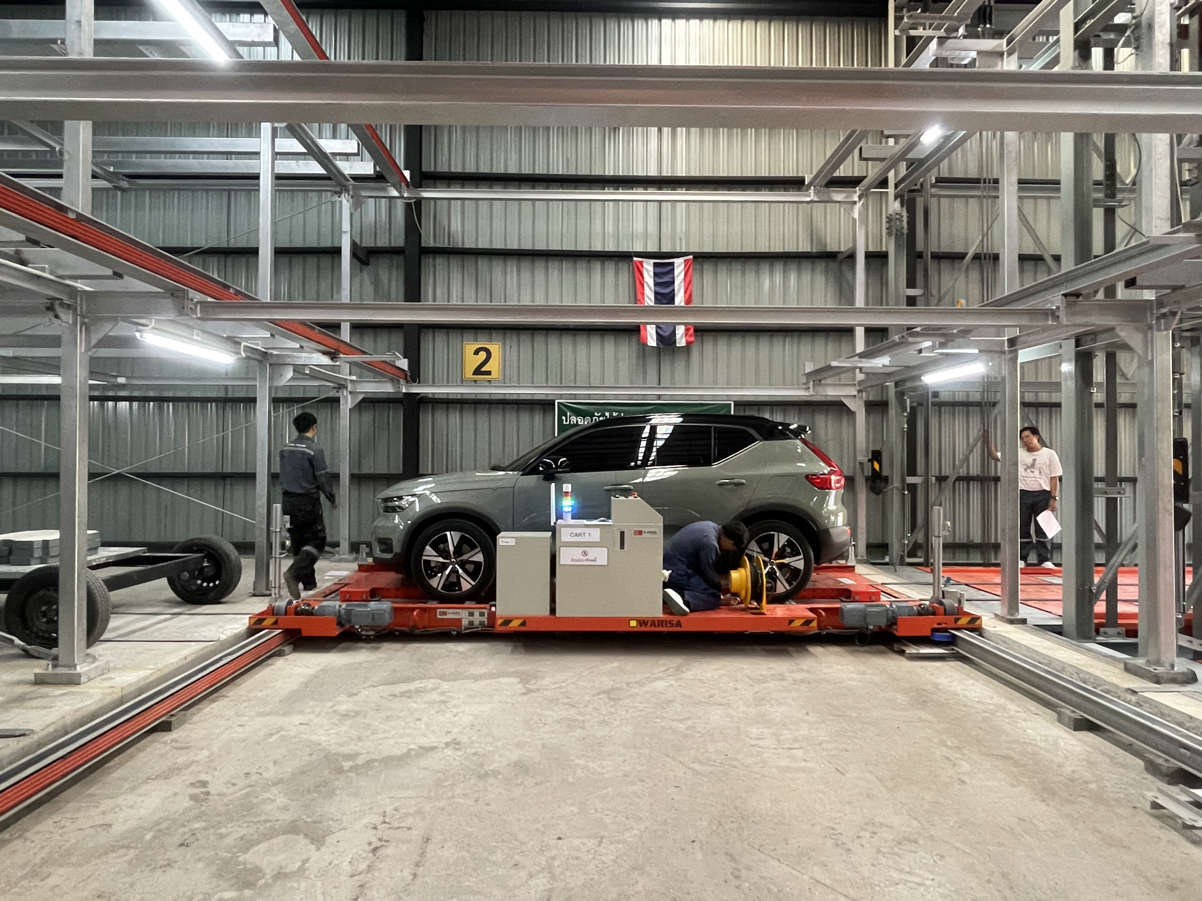 วันนี้พามาอัพเดทความก้าวหน้าเครื่องจักรกลจอดรถอัตโนมัติที่เรากำลังพัฒนาอยู่ ปัจจุบันโครงการพัฒนาเครื่องจักรกลจอดรถอัตโนมัติภายใต้ชื่อ "WARISA" (Gripper Robot) ได้ทำการทดสอบความแข็งแรงของเครื่องจักรโดยการ การวิเคราะห์แรงสั่นสะเทือน ความถี่การสั่นสะเทือน ระดับเสียง จัดตำแหน่งเพลา Bolt, Screw, Pulley, Wheel, Roller Alignment, Ball Screw, Gear ทดสอบนำรถยนต์จริง เข้า-ออก (Lift 1-3) ทดสอบและแก้ไขเพื่อไม่ให้เกิดข้อผิดพลาด โดยการตรวจสอบ Sequence การทำงาน ความสอดคล้องของเครื่องจักรทั้งหมด ทำงานร่วมกัน สั่งงานเครื่องจักรด้วยระบบอัตโนมัติ และได้มีการติดตั้งระบบ Asset Control รวมไปถึงการจองคิวนำรถออกและชำระเงินโดยสามารถชำระผ่านตู้หรือสแกนบัตรที่โทรศัทพ์มือถือก็ได้อีกด้วย