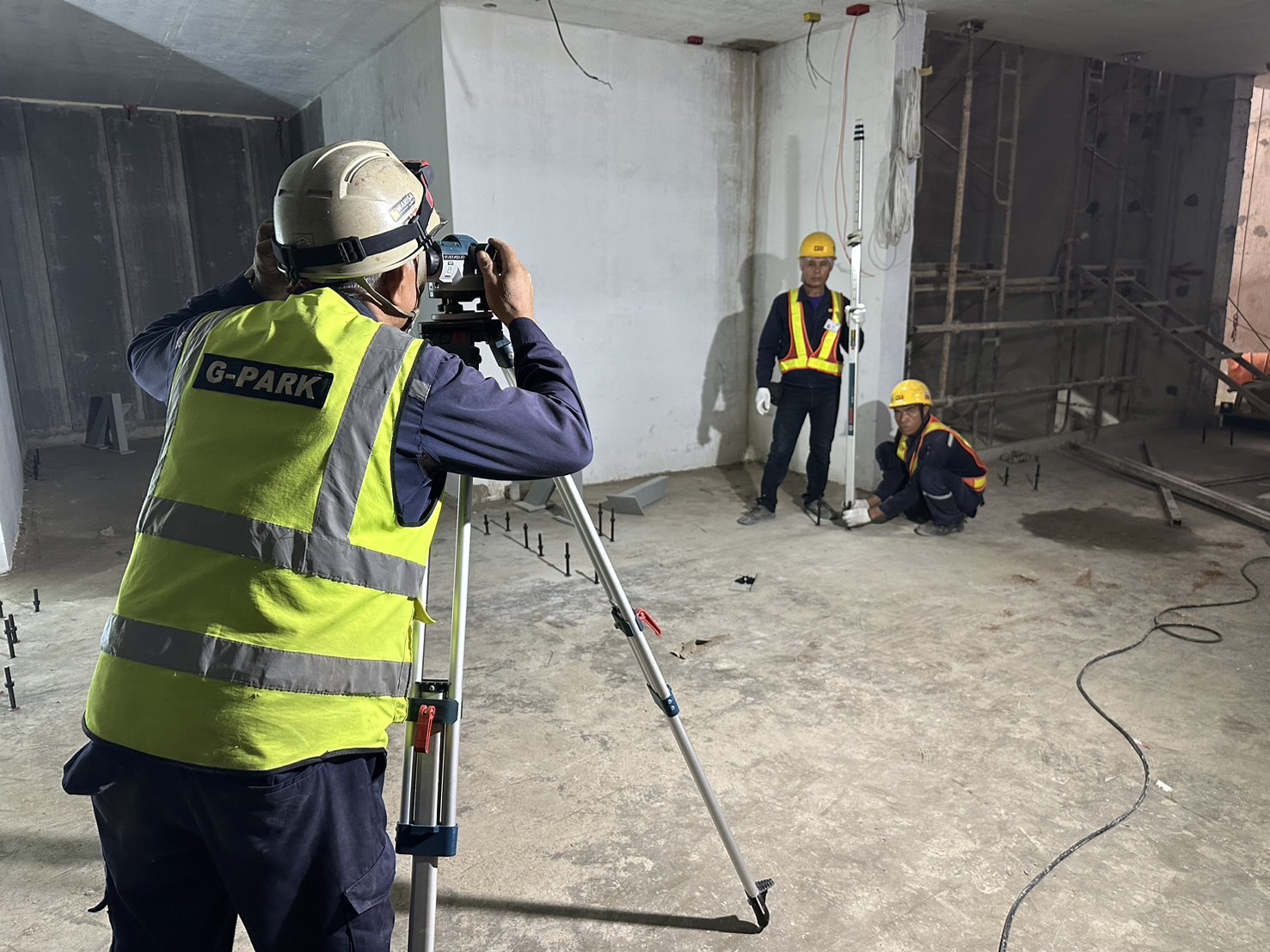 เมื่อวันที่ 24 สิงหาคม 2567 บริษัทฯ ได้เข้าวัดระดับพื้น ตีไลน์ชั้น B2 และมาร์กจุดและเจาะรูเตรียมสำหรับฝัง anchor bolt เตรียมความพร้อมสำหรับงานติดตั้งต่อไป