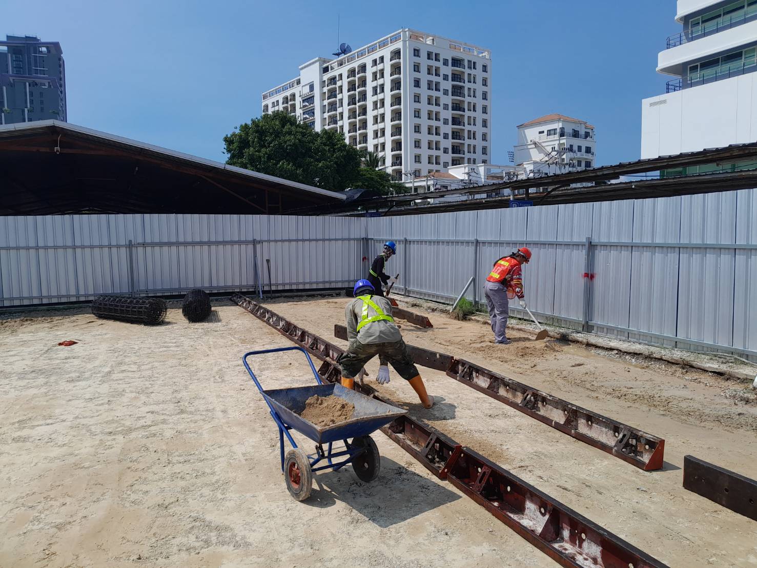 ทาง G-PARK ได้เข้าเคลียร์พื้นที่ และปรับระดับดินและบดอัดแน่น วางแบบ Zone (A-B) เตรียมงานเทคอนกรีตให้ได้ตามแผนงาน