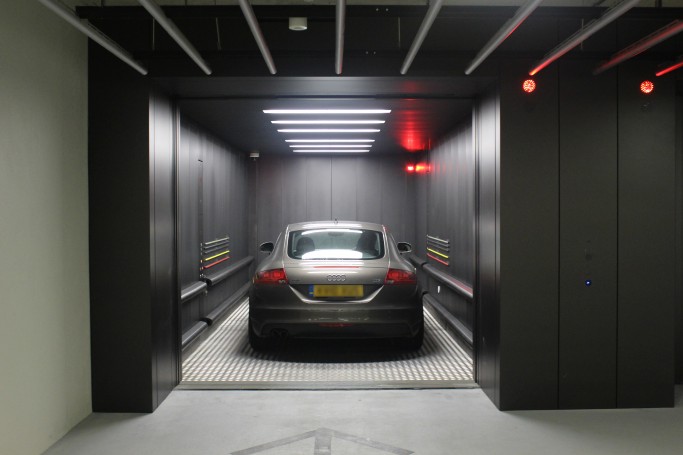 1. ระบบรองรับรถด้วยถาด ( Pallet type ) เป็นการออกแบบระบบรองรับรถให้จอดอยู่บนถาดรองรับ ( Pallet ) กลไกไม่มีอะไรซับซ้อน ผู้ใช้สามารถขับรถเข้ามาจอดด้วยตัวเองบนถาดที่จัดรองรับไว้ให้ ทำให้ไม่ต้องกังวลเรื่องเครื่องจักรจะมาทำให้เกิดการขูดขีดกับยาง ล้อแม็คหรือบังโคลน Skirt board ป้องกันปัญหา น้ำมันเครื่อง น้ำมันเกียร์ หรือน้ำทิ้งจากระบบปรับอากาศ หยดลงมาสร้างความเสียหายกับรถคันที่อยู่ด้านล่าง ประเภทนี้เป็นที่นิยมเนื่องจากการใช้งานและการบำรุงรักษาง่าย ไม่ซับซ้อน ทนทาน